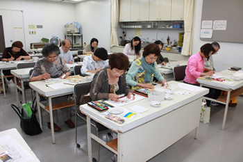 玄さんが色塗りの見本をやっています。 目に焼き付けるように真剣に見入る皆さん。