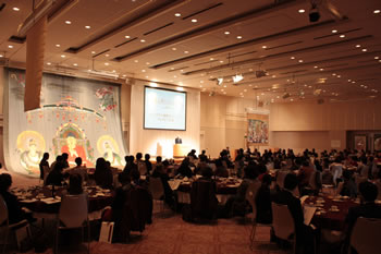 東洋大学の菅沼晃名誉教授の、「まんだら」と仏教の本質を分かりやすく伝えるお話や、俳優の滝田栄さんの、初対面なのに時間を忘れて語り合ってしまった、安達原玄との出会いのお話、舞台「レ・ミゼラブル」で、主役を演じられた際のお話があり、会場は深い感動に包まれていました。
