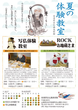今年の夏は、「写仏体験教室」と「ROCKお地蔵さま」のダブル企画をご用意いたしました。どちらも心が清められる写仏を手軽に体験いただけます。