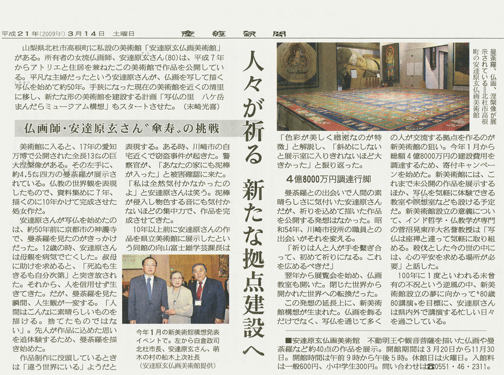 - 産経新聞山梨県版−仏画師・安達原玄さん“傘寿”の挑戦 2009/3/14